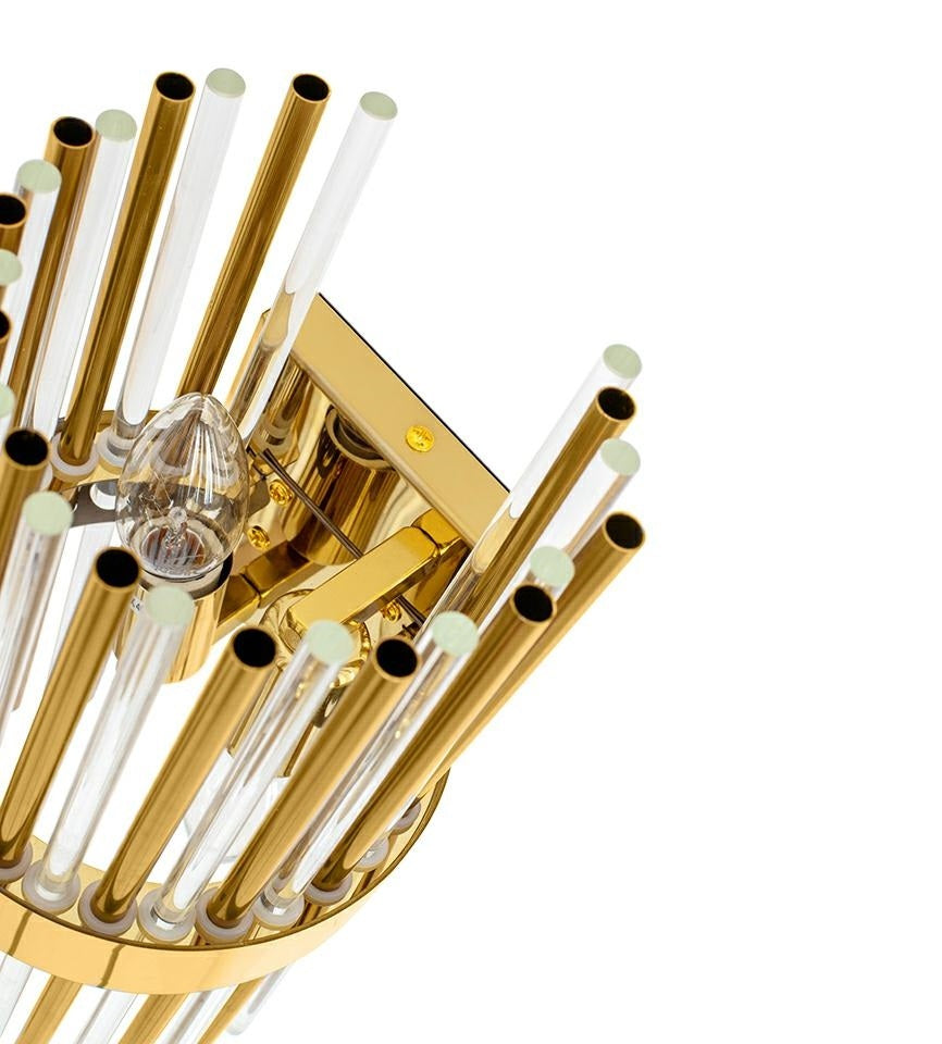 Aplica de perete GARDAN GOLD. Un dispozitiv modern de perete cu o formă atemporală. Este realizat din oțel de culoare aurie. Întregul este completat de abajururi frumoase din cristal care reflectă lumina, creând un efect vizual uimitor pe perete. Va fi o completare perfectă a interioarelor în stil Glamour.