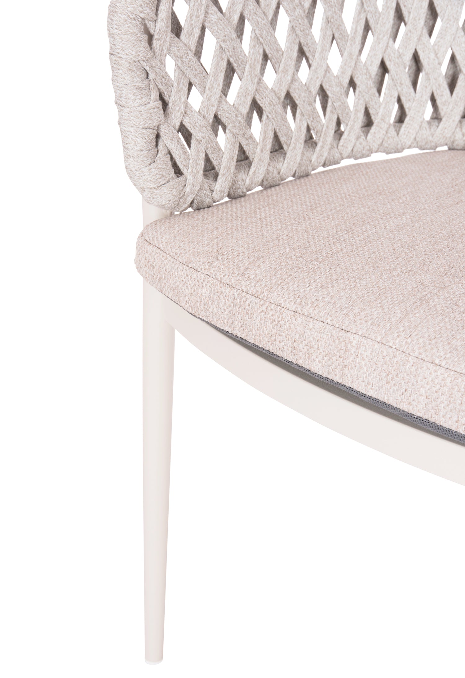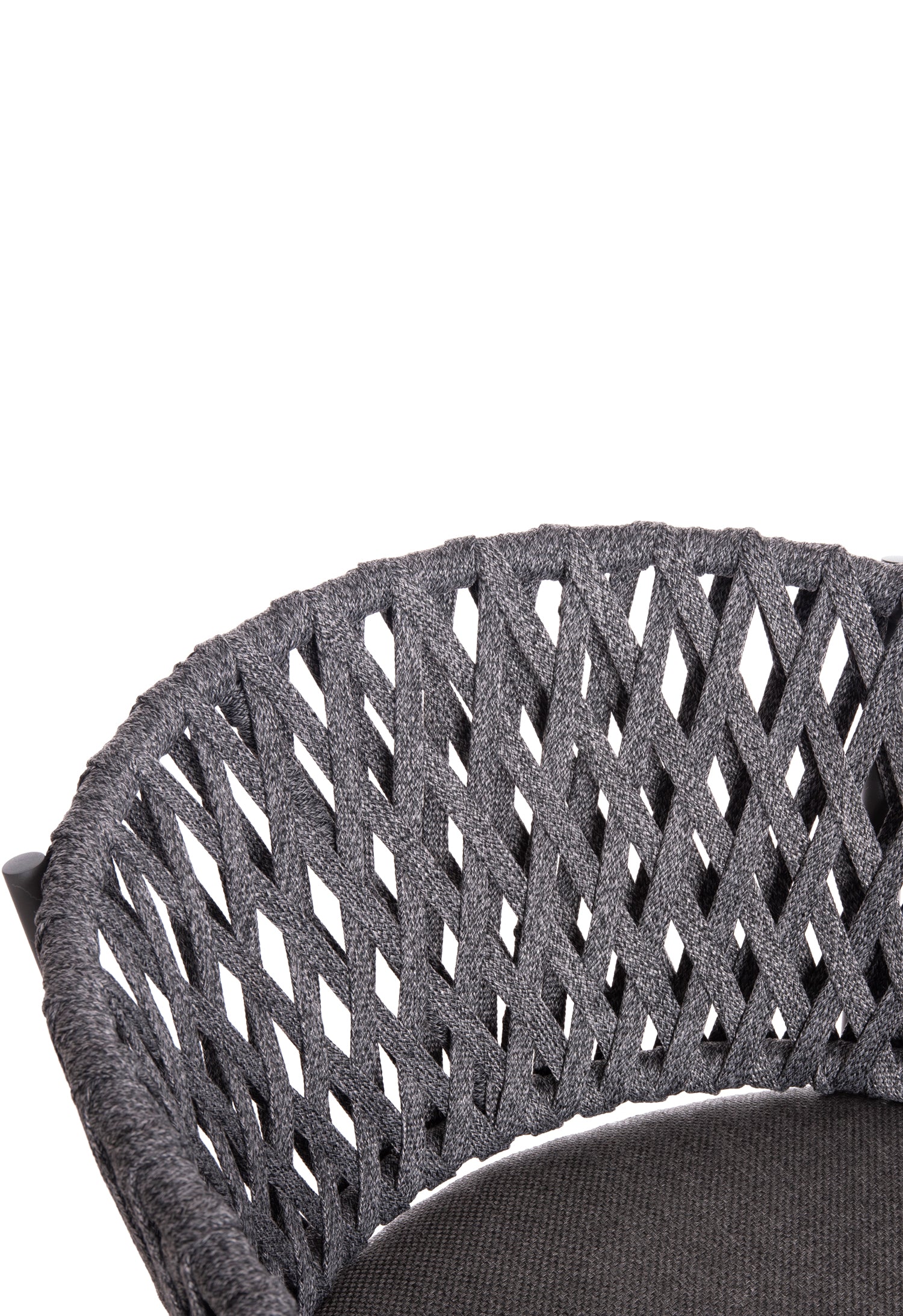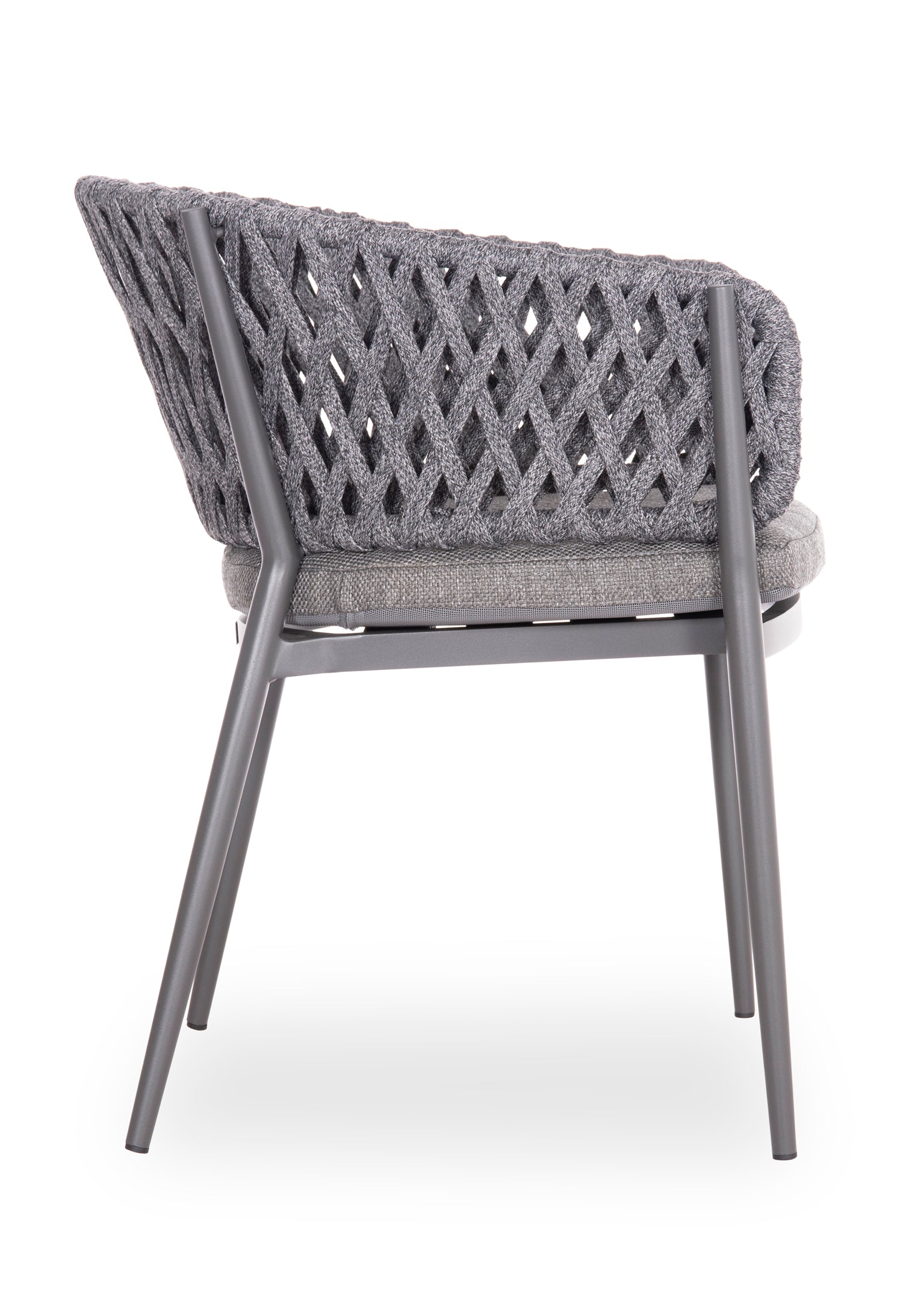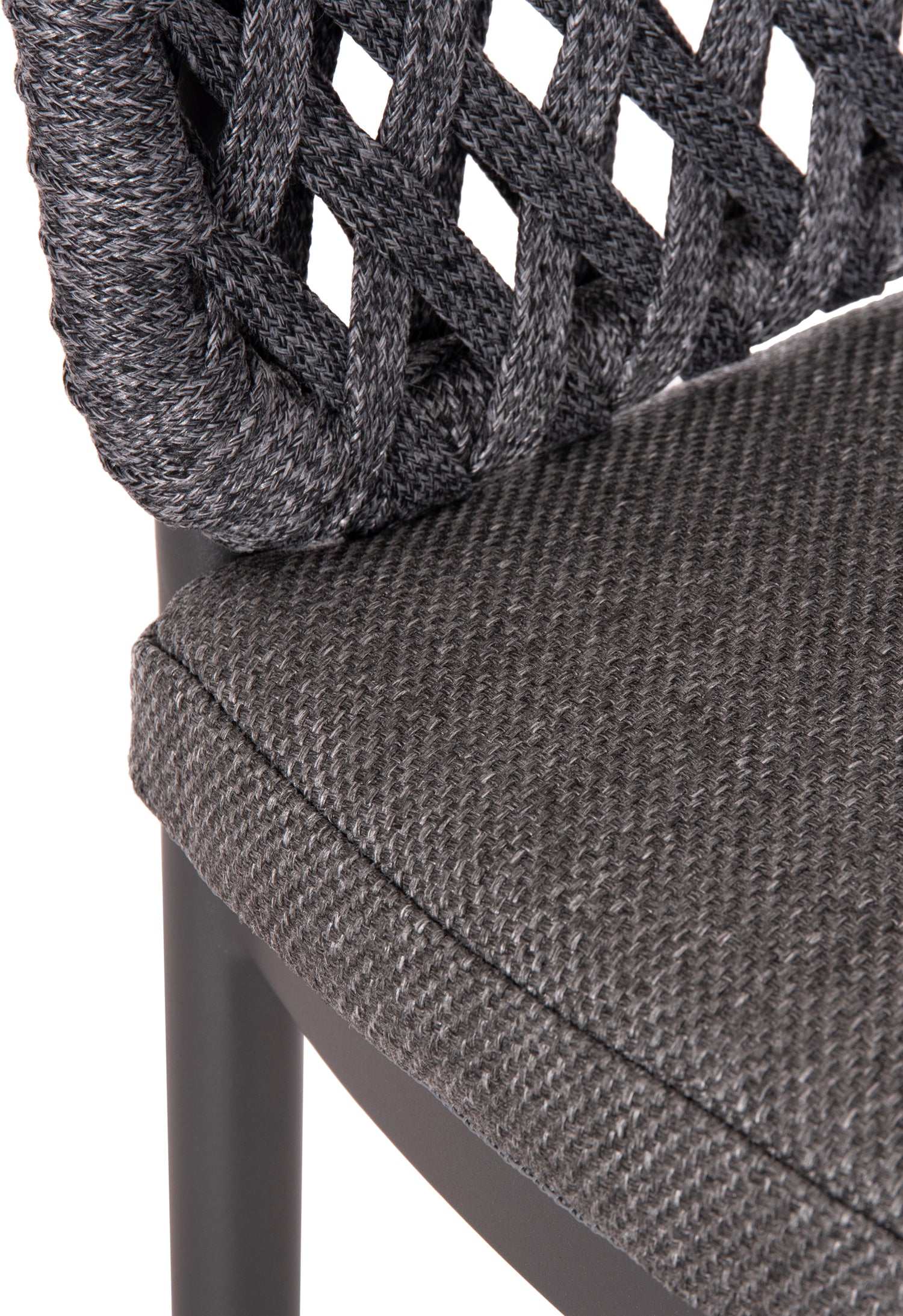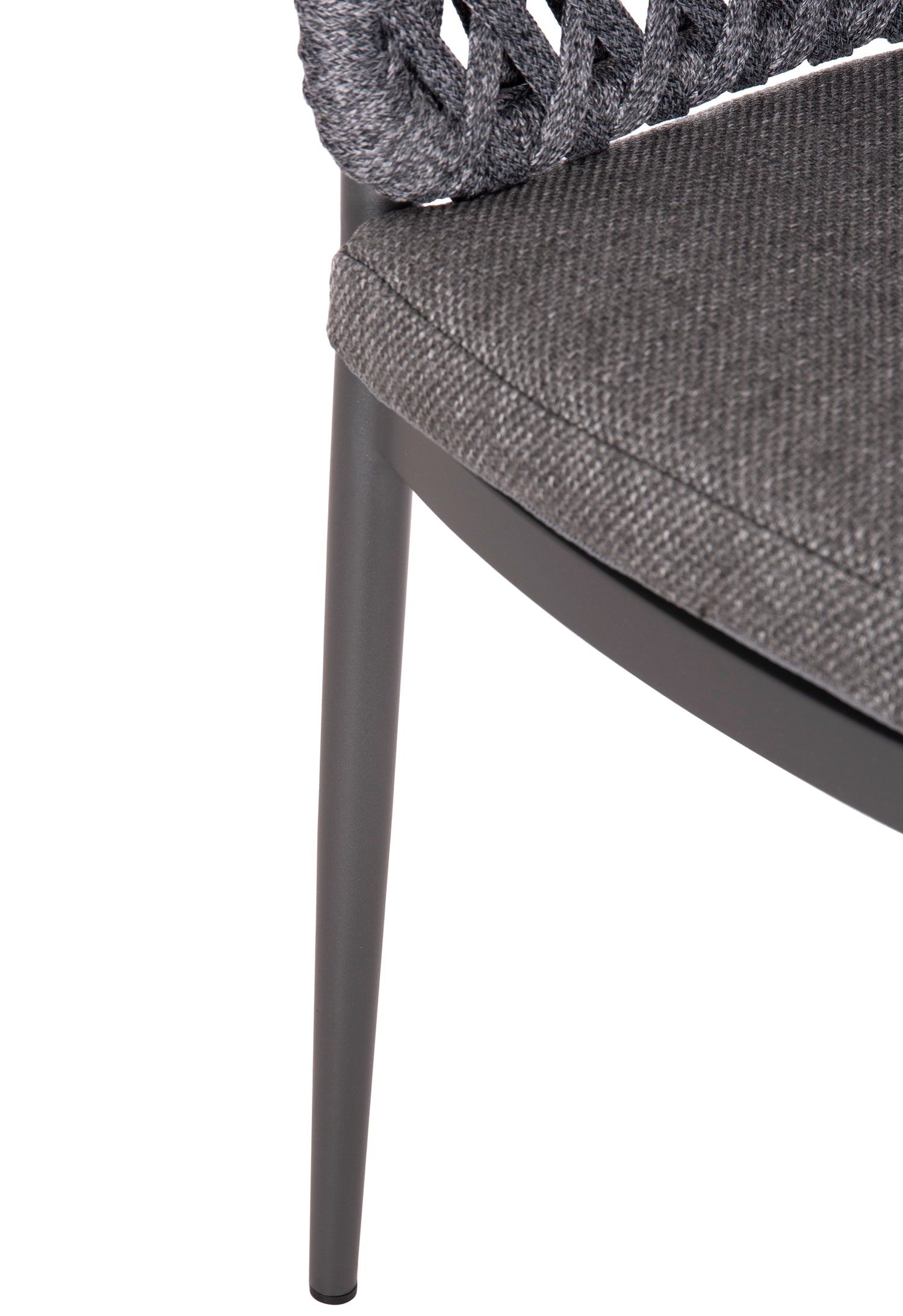 Fabricat din aluminiu și frânghie de poliester ca căptușeală pe spatele semicircular, emană lux și confort. Husa de pe perna scaunului este din țesătură OLEFIN, care este hidrofugă și durabilă.
