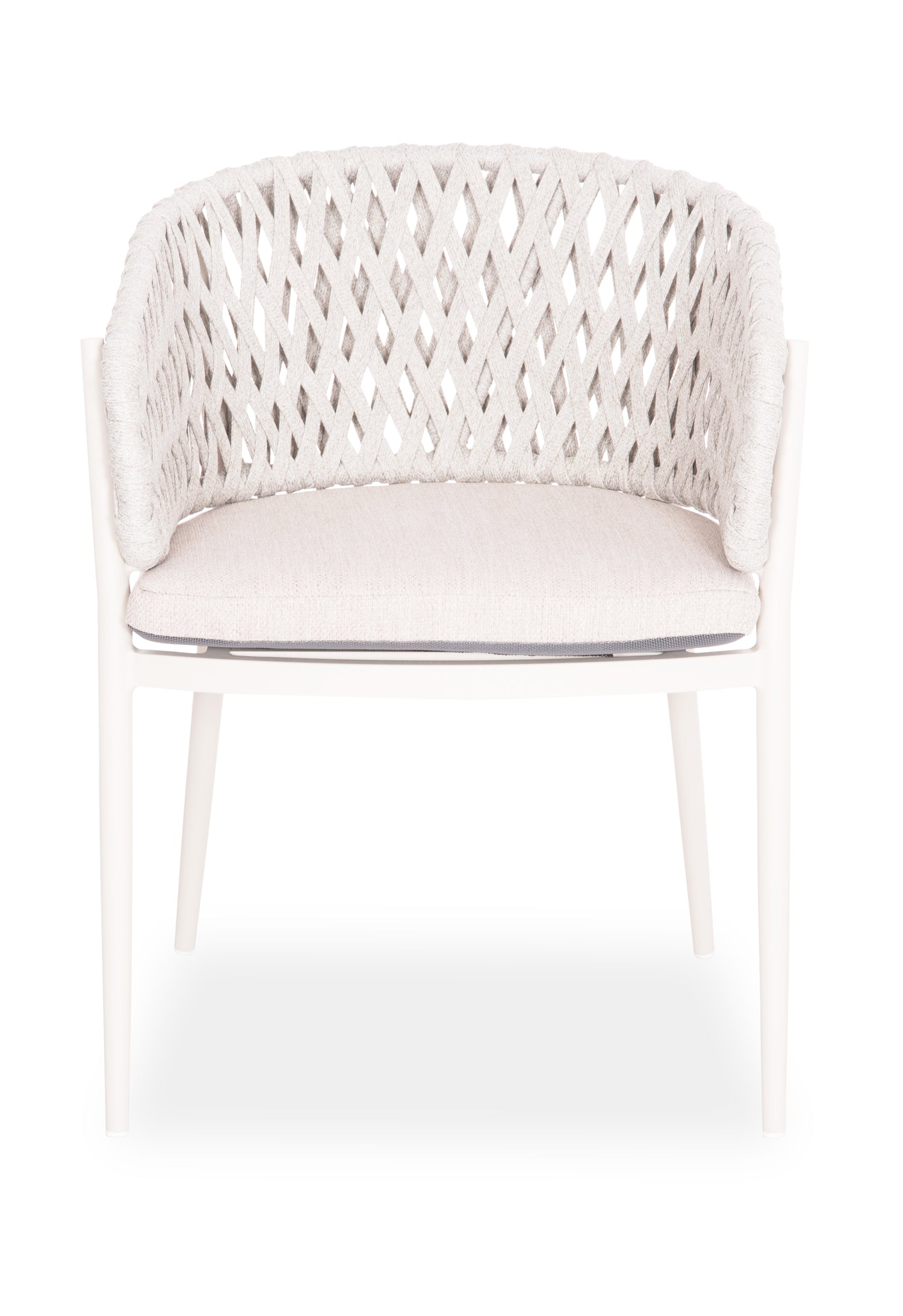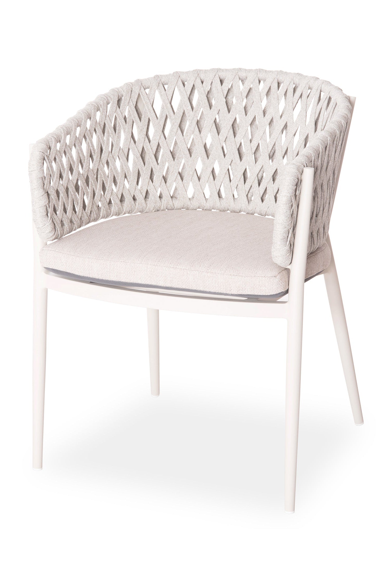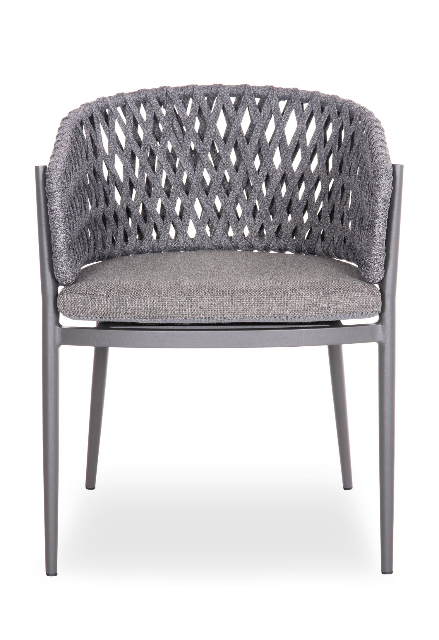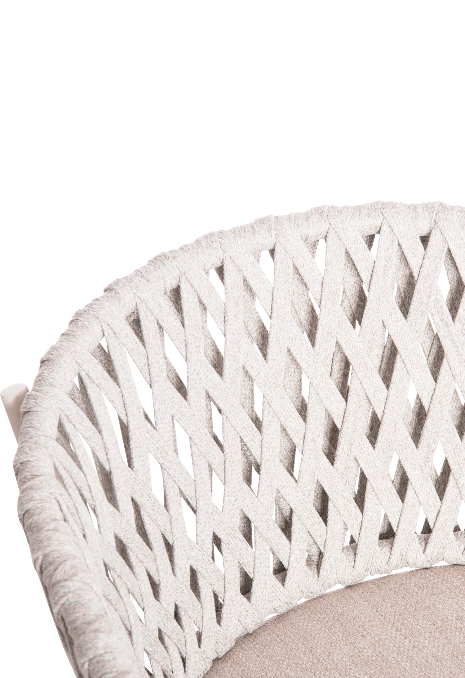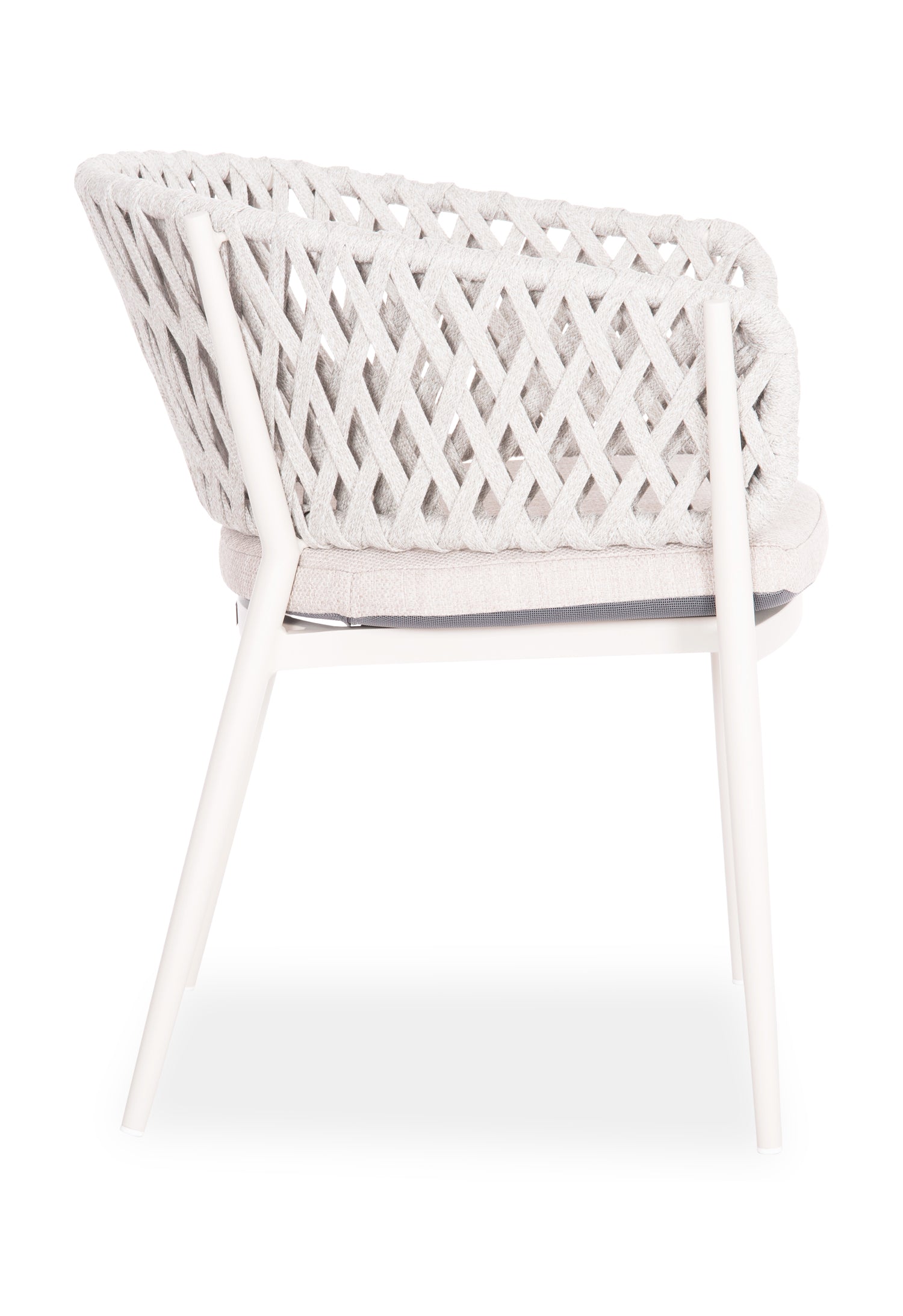 Fabricat din aluminiu și frânghie de poliester ca căptușeală pe spatele semicircular, emană lux și confort. Husa de pe perna scaunului este din țesătură OLEFIN, care este hidrofugă și durabilă.