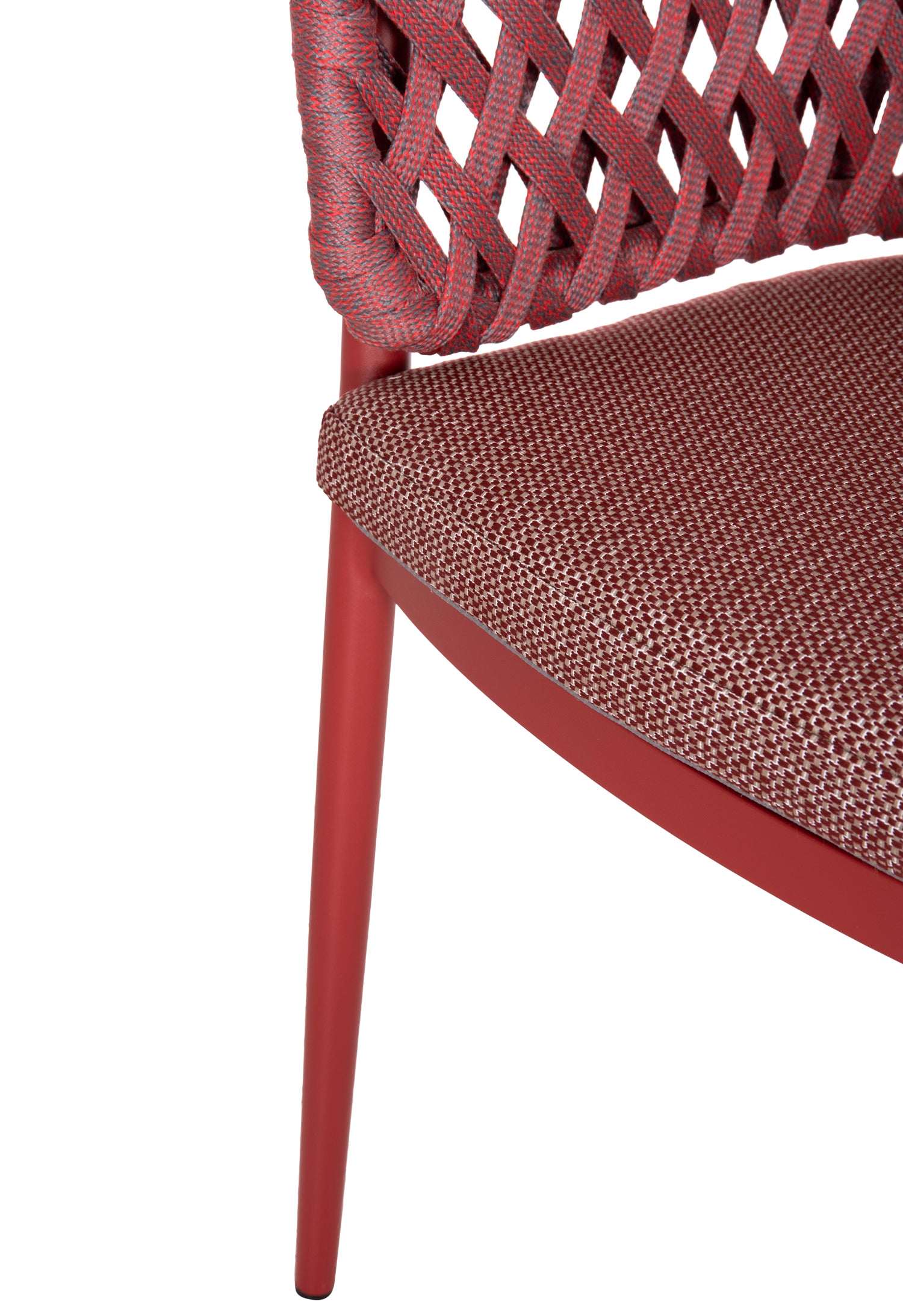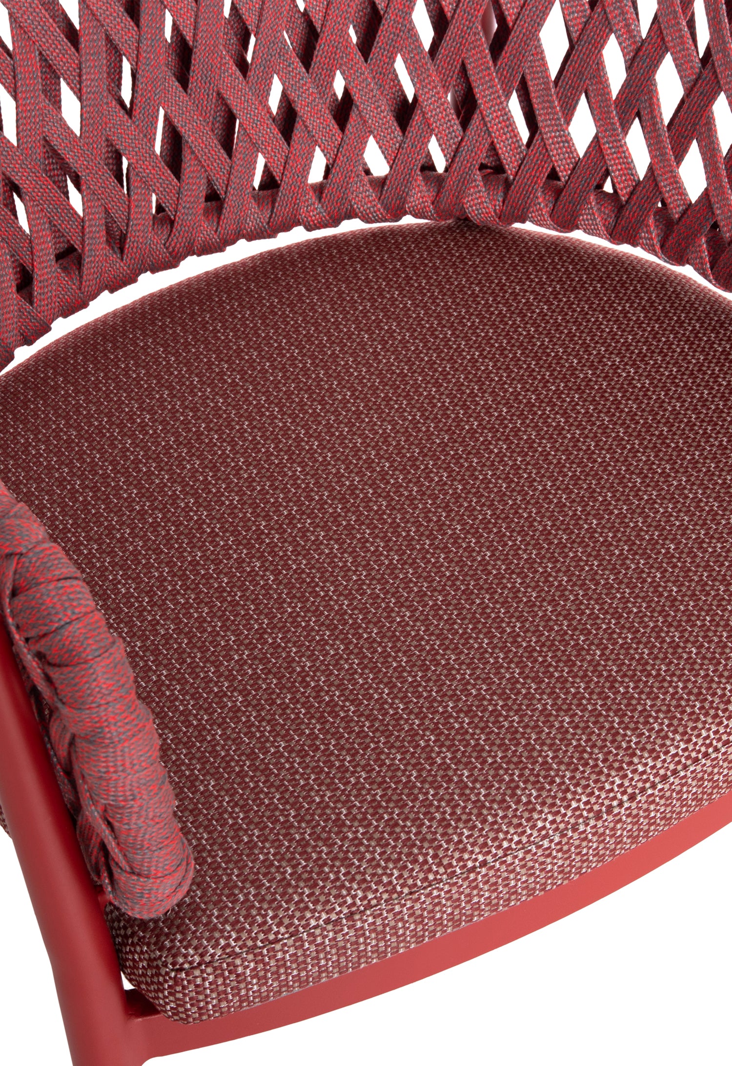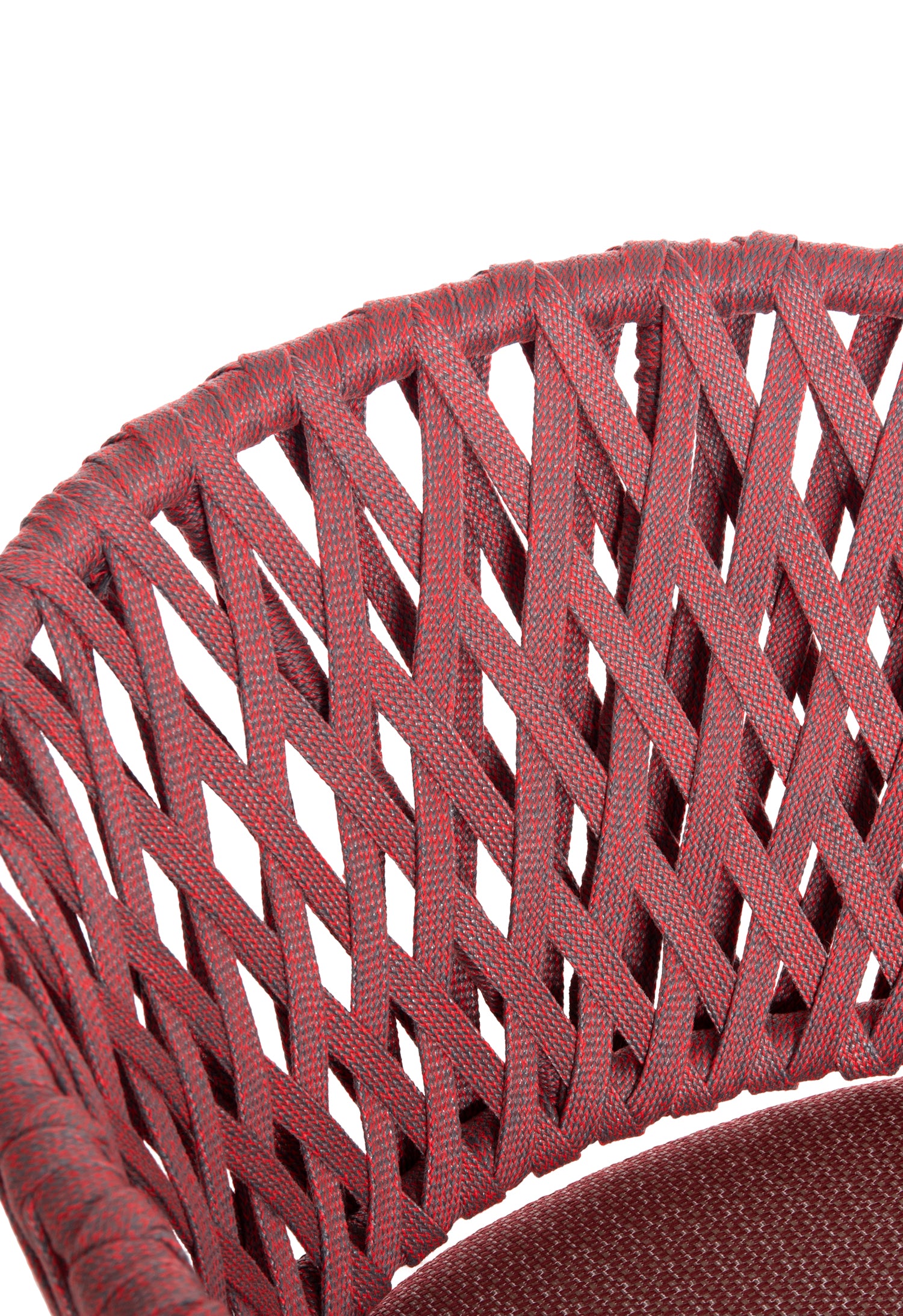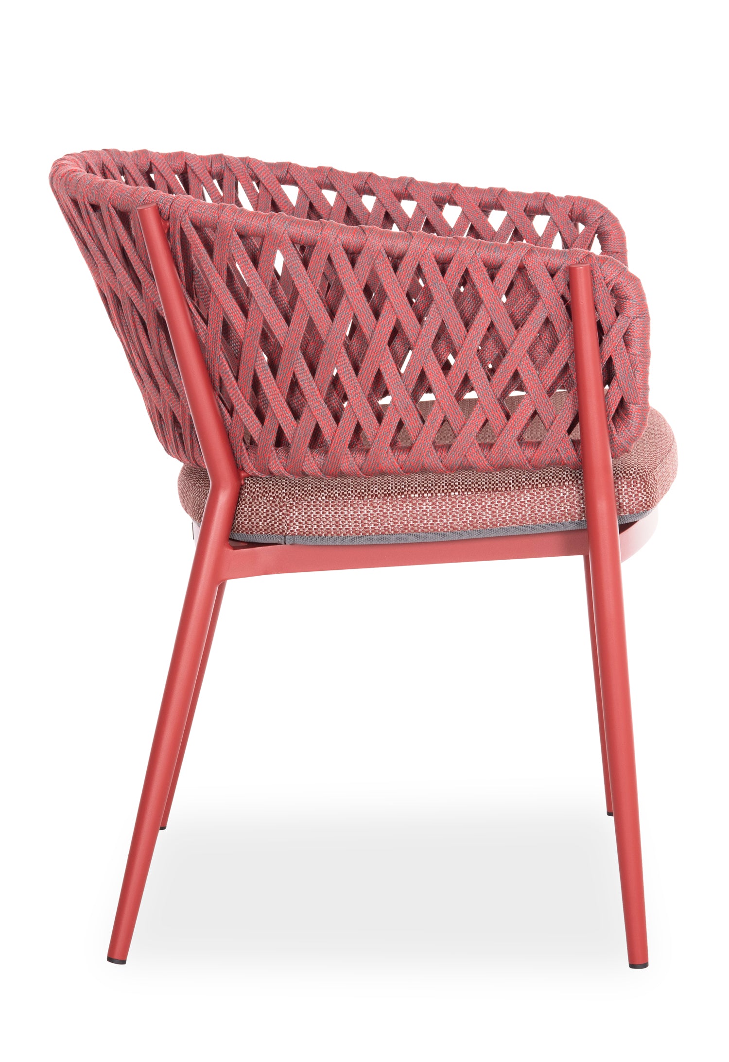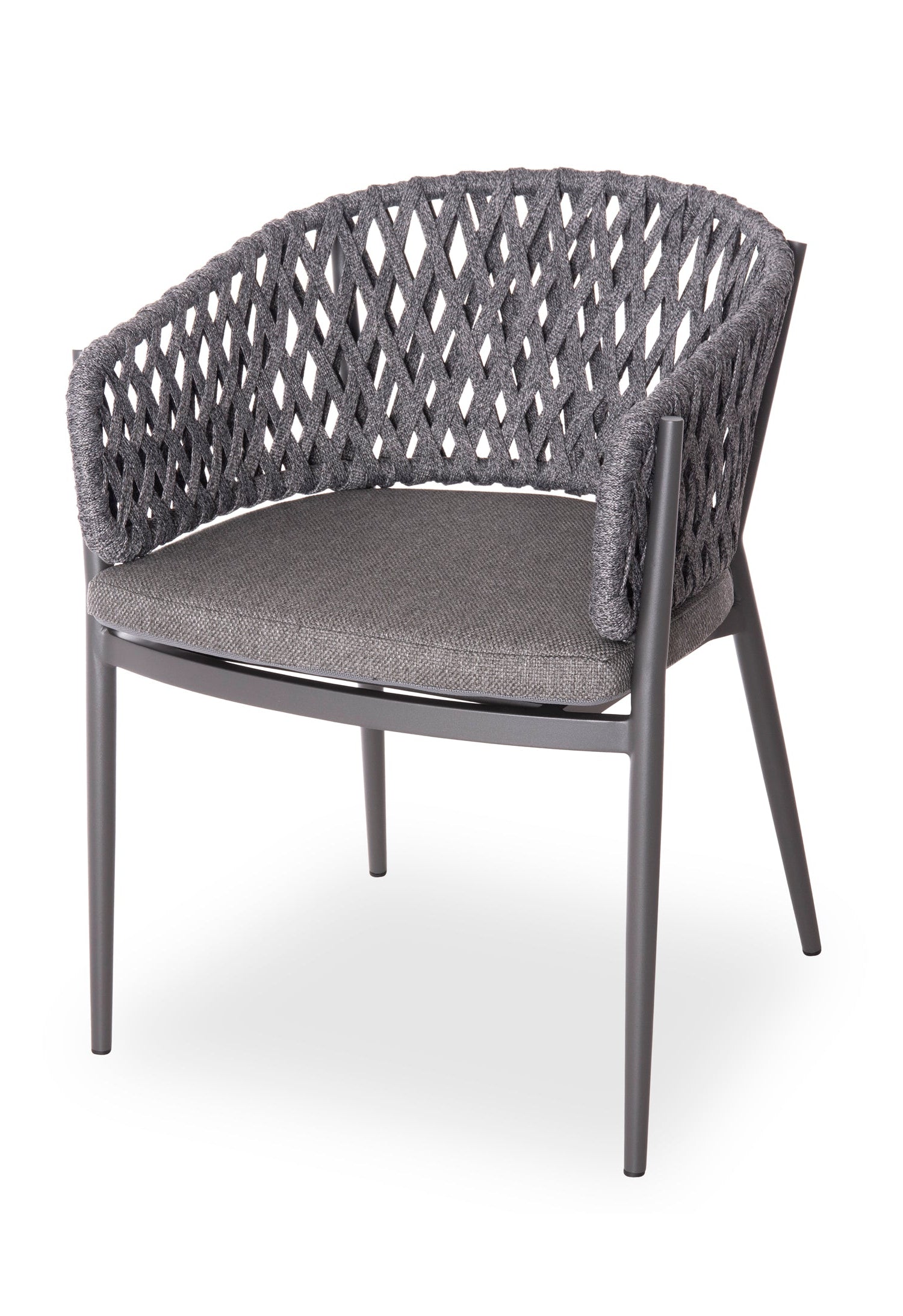 Fabricat din aluminiu și frânghie de poliester ca căptușeală pe spatele semicircular, emană lux și confort. Husa de pe perna scaunului este din țesătură OLEFIN, care este hidrofugă și durabilă.